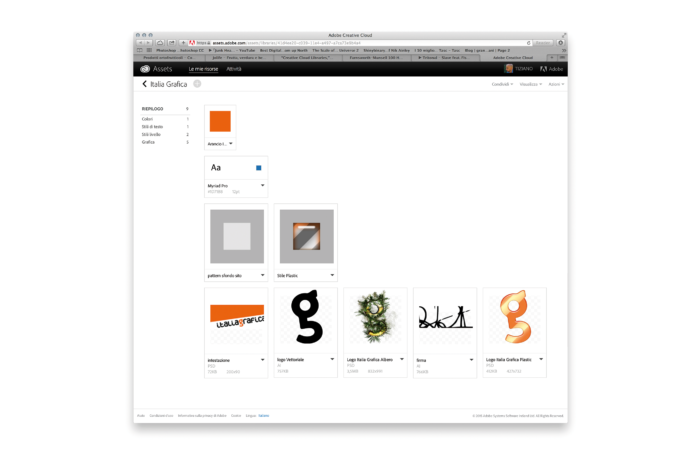 Dal menu del pannello Librerie si può selezionare la voce «Visualizza sul sito Web», questo rimanda direttamente alla gestione degli Asset del proprio account Creative Cloud dove è possibile controllare agevolmente i contenuti di tutte le Librerie, oltre a tutto il resto 5.