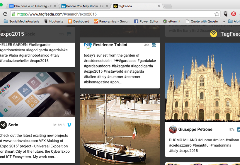 Fase 1: individuare le conversazioni sugli Hashtag di pertinenza aziendale tramite la WebApp Tagfeeda, gratuita, che consente di individuare le conversazioni che avvengono su specifici Hashtag sui social network Facebook, Twitter, Google+, Instagram, YouTube, Vimeo, SoundCloud e Feedzilla.