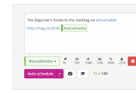 Attraverso RiteTag veniamo avvisati in tempo reale delle Hashtag più usate mentre siamo in fase di composizione dei contenuti: di ogni specifico Hashtag ci viene comunicata la frequenza oraria, il numero di condivisioni/Retweet, la visibilità potenziale, l’uso dell’Hashtag associato a immagini 2. RiteTag ci rivela inoltre quali sono i Social Media Influencer più attivi sull’Hashtag selezionato e anche gli Hashtag correlati 3.