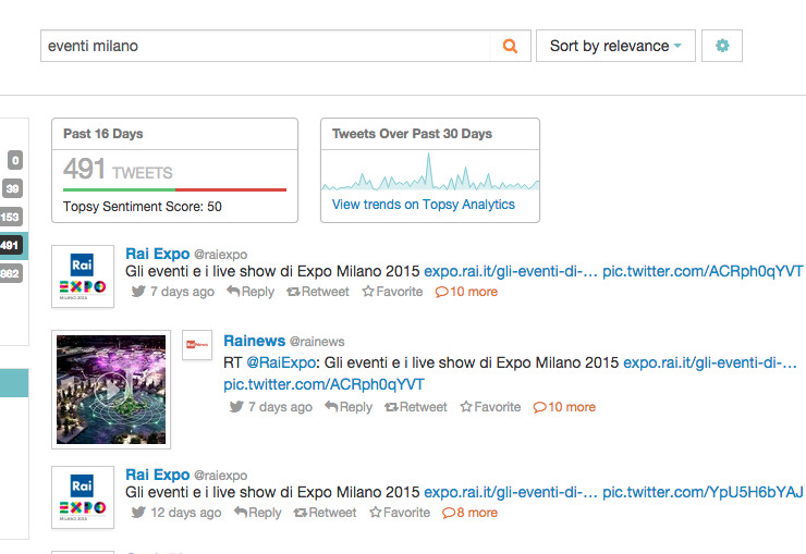 Topsy (che poi è stata chiusa dall’Apple) era uno strumento decisamente efficace per essere sempre avvisati circa le più recenti tendenze e trasformazioni che riguardano la nostra nicchia di riferimento sui social network. Topsy consentiva di scoprire, quantificare e prevedere i trend su una determinata nicchia di mercato, e prendere in modo proattivo decisioni: per ogni analisi forniva anche specifiche informazioni sul sentiment relativo alla #hashtag di riferimento (6 – Sentiment Scare di Topsy).