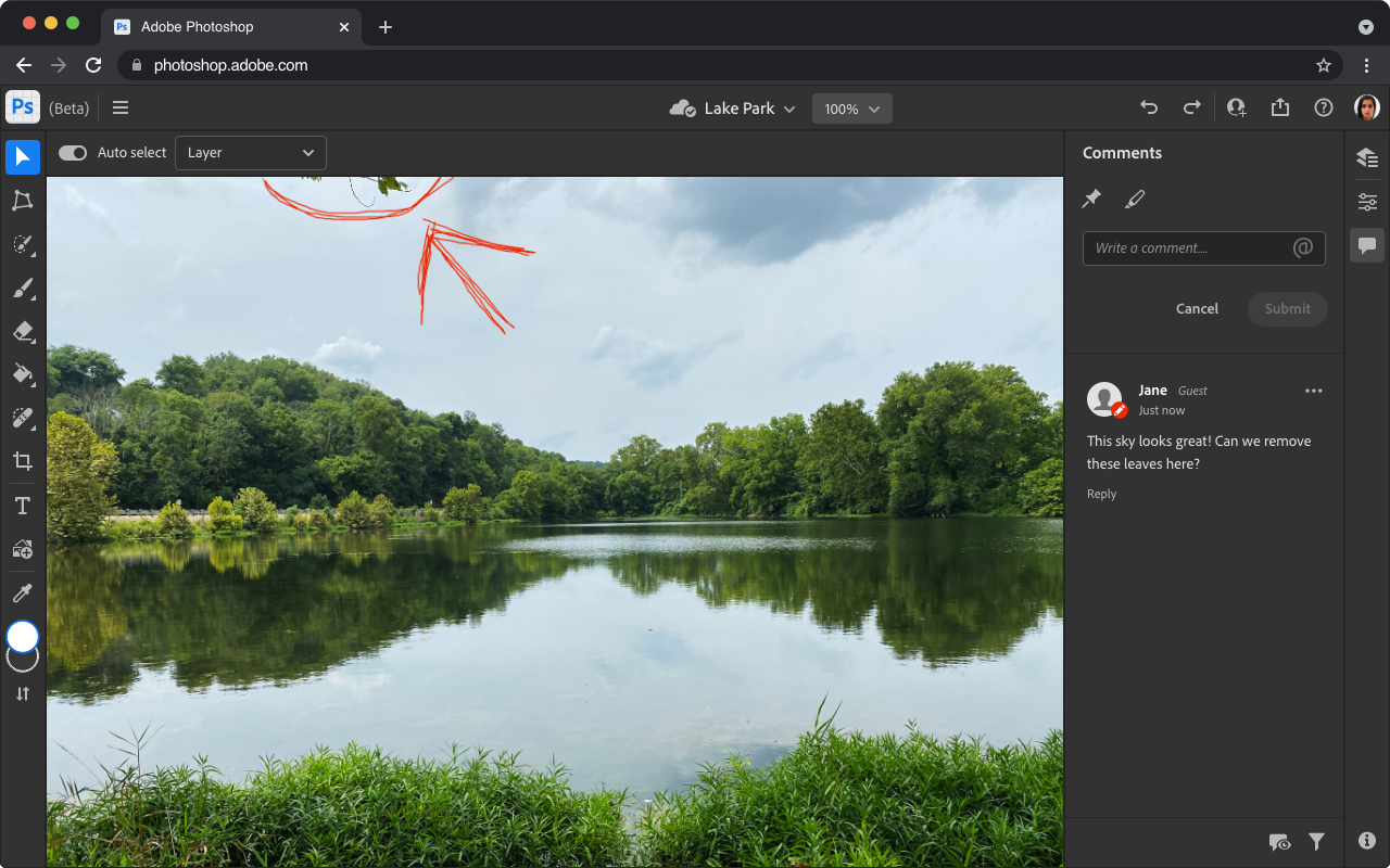 Si tratta dunque principalmente di una funzione di condivisione e collaborazione, ma gli abbonati a Creative Cloud possono anche fare leggere modifiche ai file di Photoshop o Illustrator direttamente nel browser. Photoshop per web è in beta pubblica, mentre Illustrator sul web è in beta privata ad accesso limitato.