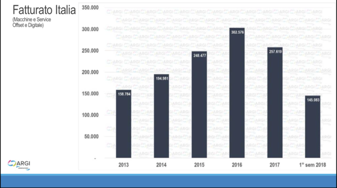 Nel corso della presentazione sono stati presi in esame i dati degli ultimi 5 anni e del 1° semestre del 2018. La prima evidenza è che il 2016, l’anno di drupa, resta l’anno che ha registrato la performance migliore seguita da un 2017 sempre positivo, ma meno eclatante del precedente. I dati, inoltre, confermano la crescita del digitale e confermano la tendenza degli stampatori di allargare la propria offerta affiancando alle macchine offset soluzioni di stampa digitale.