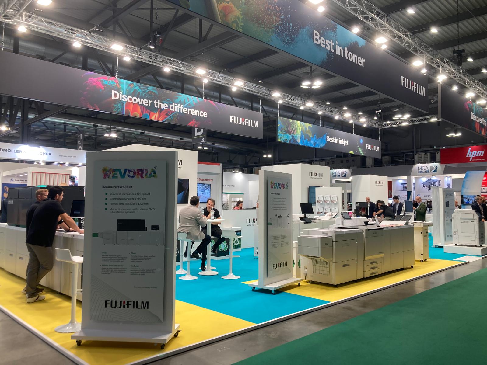 A Print4All c’è però ampio spazio anche per le tecnologie a toner, un altro fronte importante per Fujifilm. In esposizione, il modello di punta Revoria PC1120, progettato per alzare gli standard in termini di precisione del colore e qualità di stampa. Soluzione rivolta al mercato professionale di fascia alta, con un motore di stampa a sei colori in un unico passaggio e un massimo di due toner speciali, offre una risoluzione di 2.400 dpi e una stampa ad alta velocità fino a 120 A4 ppm.