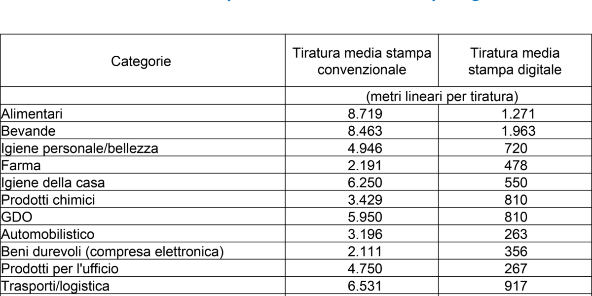 I fattori più salienti emersi dall’indagine sono la crescita media dei fatturati (+8,4%), la diminuzione della tiratura media con stampa convenzionale (-22%), il punto di breakeven per la tiratura media con stampa convenzionale (1.498 m lineari).