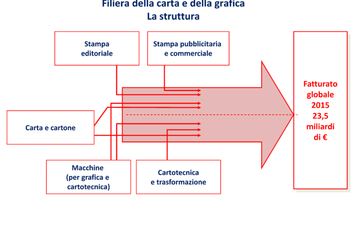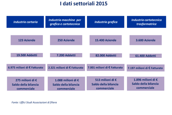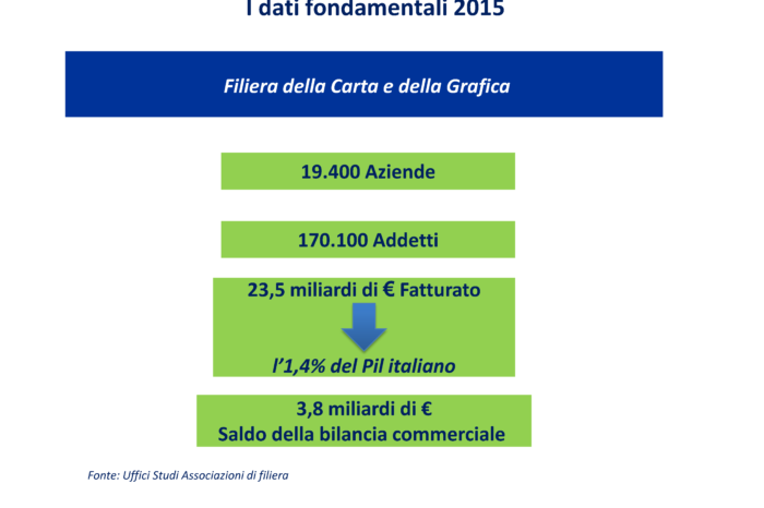 Si è svolta lunedì a Milano l’Assemblea pubblica della Federazione della Filiera della Carta e della Grafica che rappresenta i comparti industriali di Assografici (grafica e cartotecnica/trasformazione), Assocarta (carta) e Acimga (macchine per la grafica e cartotecnica); una filiera che rappresenta 19.400 aziende, con oltre 170.000 addetti, un fatturato 2015 di 23,5 miliardi di euro (pari all’1,4% del PIL italiano) e un saldo attivo della bilancia commerciale di 3,8 miliardi di euro.