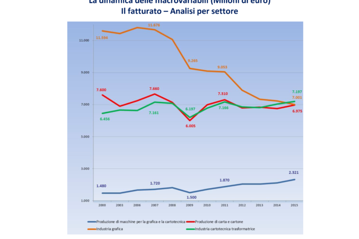 Con una panoramica economica sui settori rappresentati dalle Associazioni che costituiscono la Federazione il Presidente ha completato il quadro in cui operano oggi le imprese. Analizzando i singoli settori ha evidenziato che a fronte della forte caduta di fatturato e addetti dell’industria grafica, dal 2007 in poi e proseguita negli anni più recenti, si evidenzia nel 2015 una discreta ripartenza del settore cartario e cartotecnico-trasformatore e una forte crescita del settore delle macchine grafiche e per il converting.