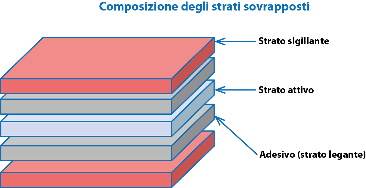 L’integrazione di strati assorbenti attivi consente di ottenere efficienti barriere che determinano la funzionalità degli imballaggi intelligenti attivi e passivi; il tempo di penetrazione tende ad aumentare, mentre diminuisce il rateo di trasmissione del vapore acqueo (Water Vapor Transmission Rate, WVTR). Le tecnologie di stesa di questi strati sono l’Inkjet, la laccatura/verniciatura, la stesa a colata, e la distribuzione con getto a spillo. La composizione degli strati sovrapposti è fondamentale per il perfetto funzionamento del sistema di active packaging.