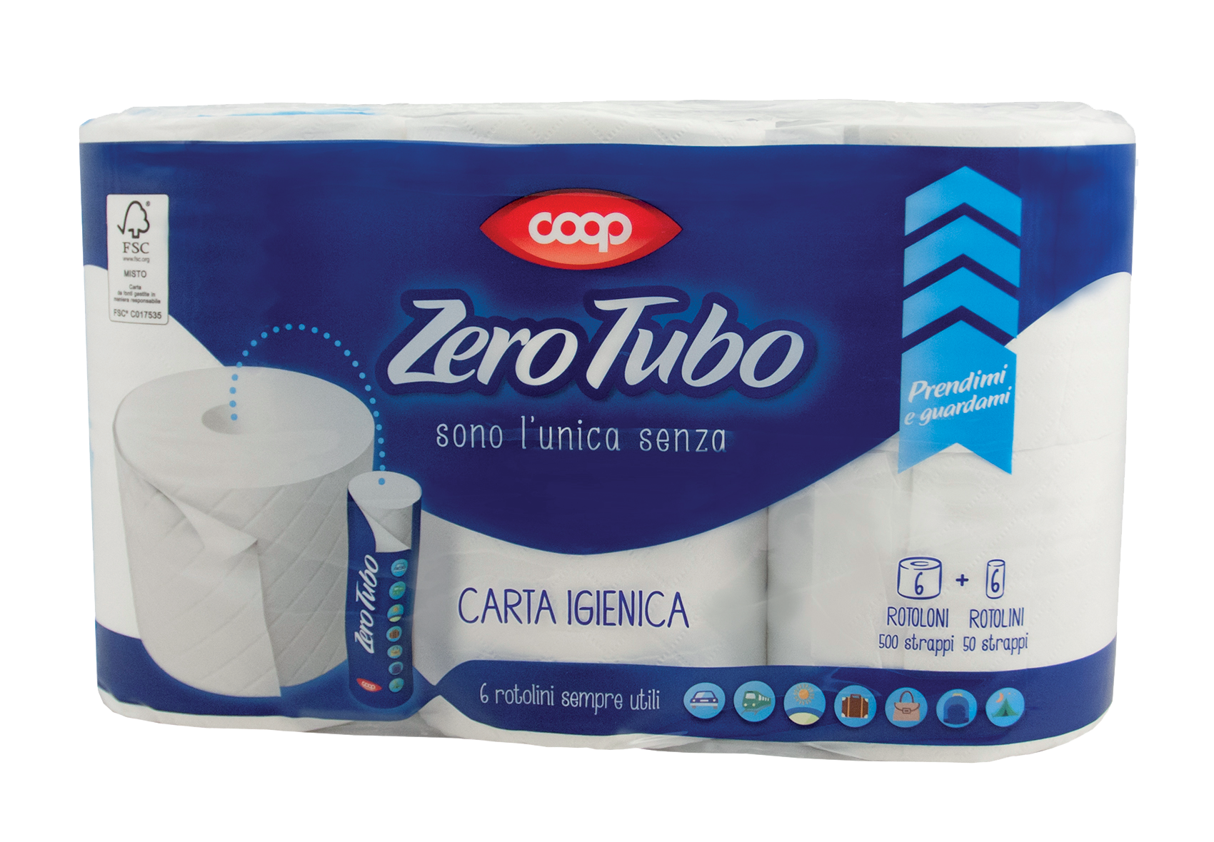 Un esempio pratico è dato dalla carta igienica Zero Tubo, lanciata in Italia, priva internamente dell’anima. All’interno del rotolo è inserito un ulteriore rotolino di carta per essere asportato e tenere in borsetta per eventuali emergenze.1_coop_ZeroTubo