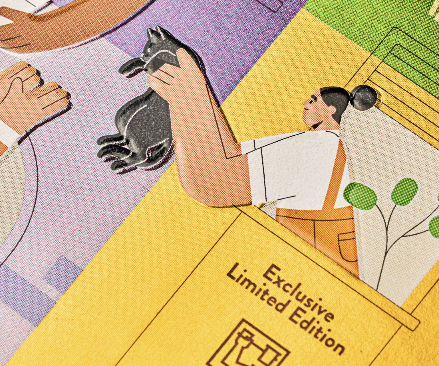Per il pack speciale “Alf – Luxoro”, che rappresenta la tipica scena italiana di vita di vicinato, è stata scelta, invece, la metallizzazione digitale, l’argento Luxoro è stato applicato anch’esso su alcune parti tramite DM-SMARTLINER, una delle ultime tecnologie di Kurz dedicate alla nobilitazione digitale.