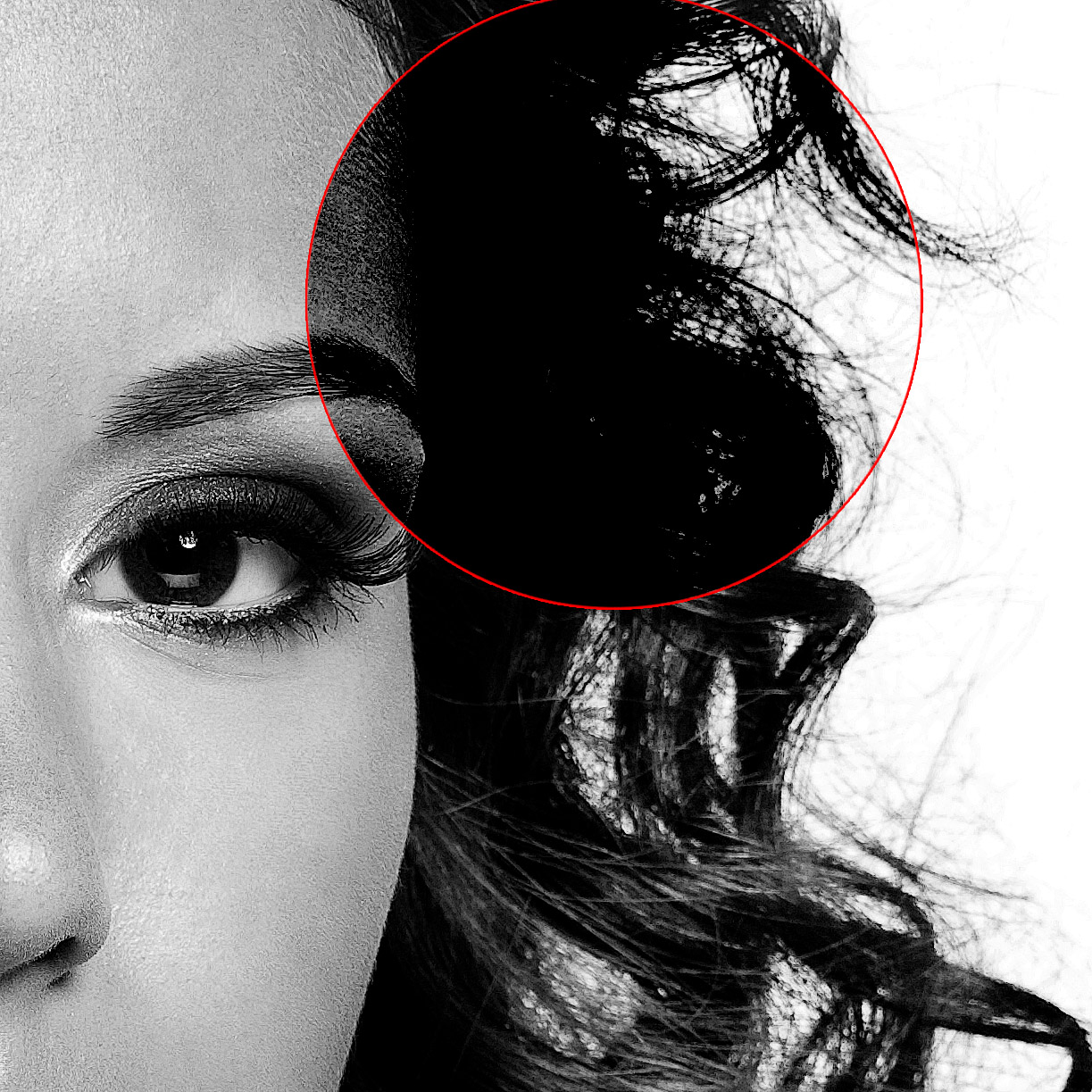 L’immagine presenta le difficoltà tipiche dei capelli: tanti dettagli fini e una commistione più o meno evidente con lo sfondo. Con queste premesse dobbiamo eliminare dal nostro arsenale tutti gli strumenti di selezione e, peggio che peggio, i tracciati.