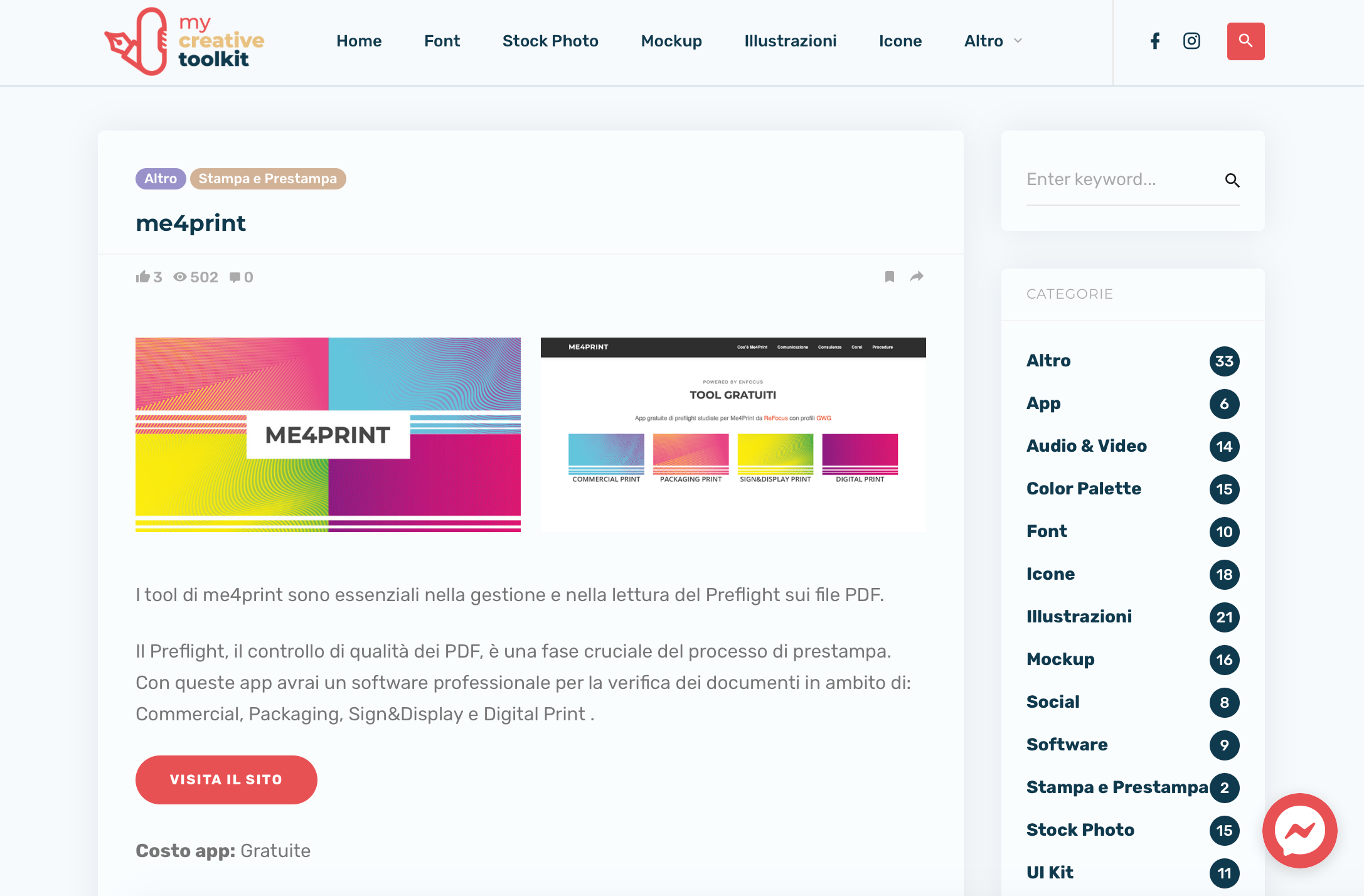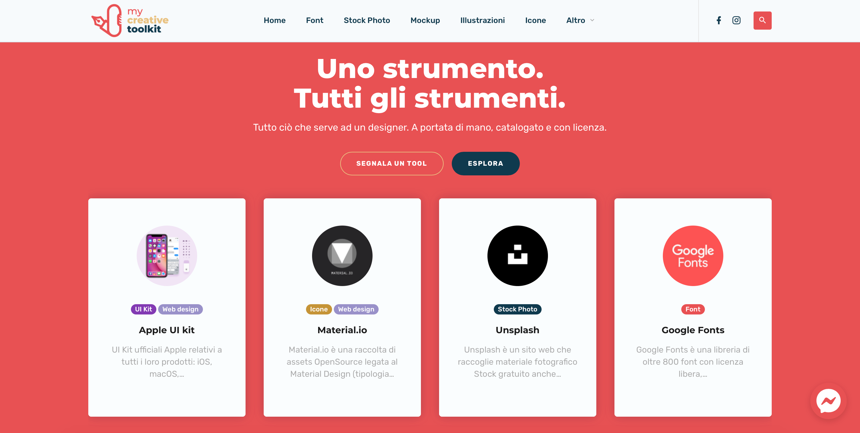 Il sito web raccoglie strumenti di ogni tipo: font, mockup, fotografie stock, illustrazioni, icone, software. Ma anche risorse per chi lavora in settori paralleli alla classica comunicazione digitale: videomaker, UI/UX designer, Social Media manager.