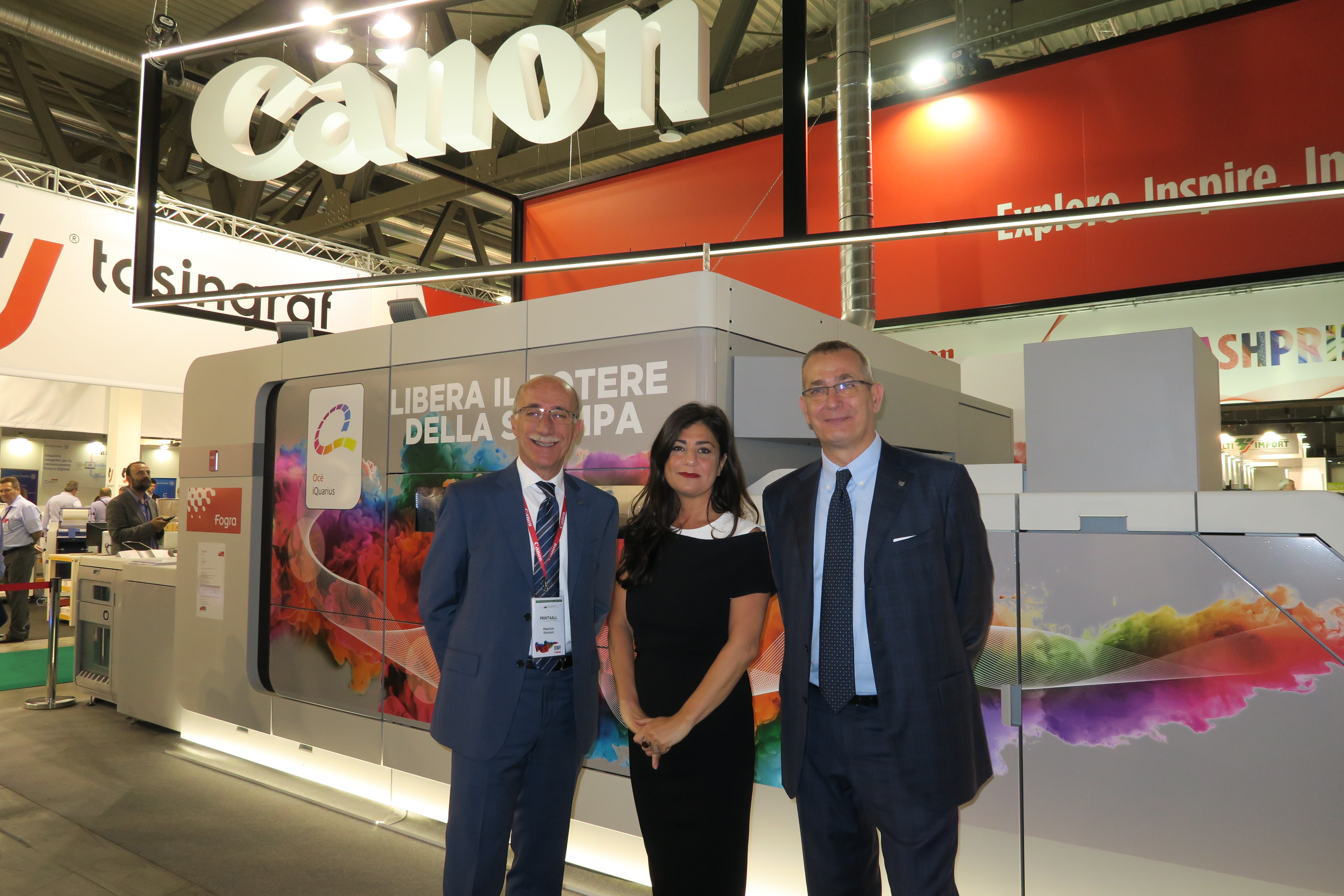Dalla stampa promozionale, alla comunicazione visiva di grande formato per interni ed esterni: le innovative applicazioni realizzabili con le soluzioni Canon nei settori dell’editoria al centro dello stand della multinazionale giapponese. Lo stand, un’area di 180 mq, permette infatti ai visitatori di compiere un percorso completo tra alcune delle più recenti tecnologie Canon. Per poter rispondere alle nuove sfide dell’era Industry 4.0 è essenziale riuscire a costruire un’efficace integrazione fra le fasi del processo di stampa: dalla gestione dei file fino alla produzione includendo la finitura. Concetti tradotti in pratica tanto sul piano tecnologico, mostrando dal vivo le potenzialità dei propri sistemi interconnessi, quanto su quello pratico, attraverso un processo produttivo completo, dove la stampa è solo uno dei passaggi per arrivare a una serie di applicazioni in grado di assecondare ogni aspetto di una strategia di comunicazione contando sulla tecnologia più adatta.