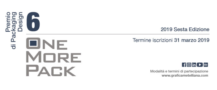 Ultime settimane per iscrivere progetti e lavori in cartotecnica alla sesta edizione di OneMorePack, il premio di packaging design promosso da Grafica Metelliana e patrocinato da Aiap, Unicom, Assografici e Confindustria Campania, rivolto ai designer professionisti e a quelli in formazione e di cui Italia Grafica è media partner.
