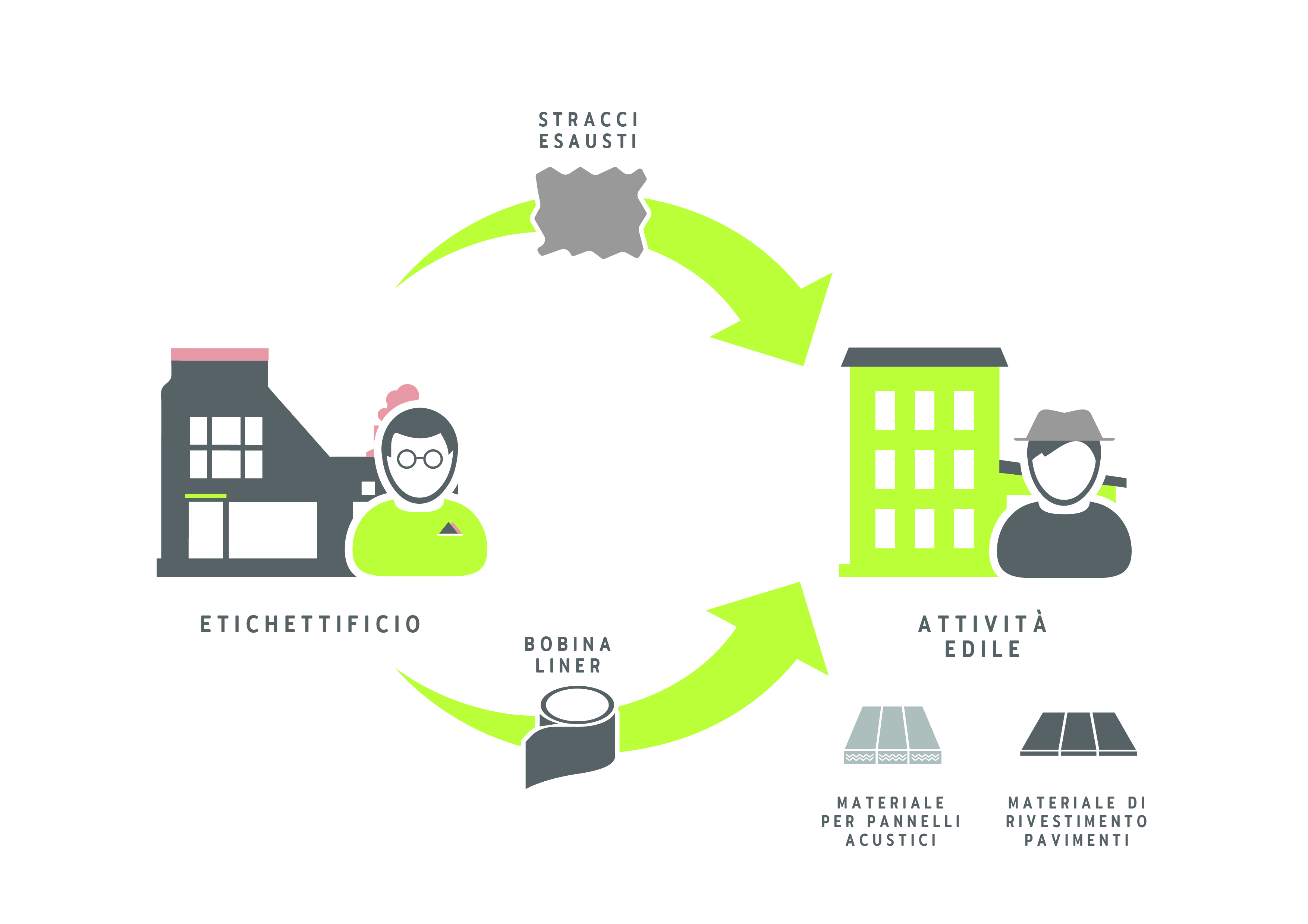 La sfida è dunque la seguente: creare una visione circolare di flussi di materia in trasformazione, così come fa ogni sistema naturale con cui ci confrontiamo. Perché affrontare alti costi di smaltimento quando si può iniziare uno scambio sostenibile e conveniente? A livello pratico, si tratta di analizzare la qualità del materiale di scarto di una produzione e indirizzarlo, piuttosto che alla discarica, alla destinazione più consona alle sue caratteristiche. Per esempio, gli scarti di liner potrebbero essere riutilizzati da un’attività edile presente sul territorio come materiale di rivestimento, evitando così l’uso di altre risorse ex novo.