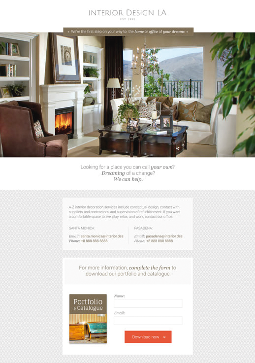 La landing page di “Interior Design LA”.