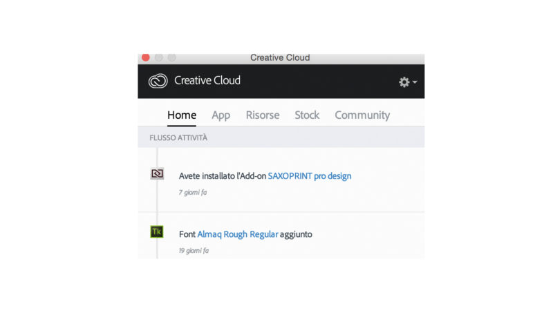 Poiché il software è riconosciuto da Adobe, la sua gestione è pilotata e tracciabile dal pannello Adobe Creative Cloud.