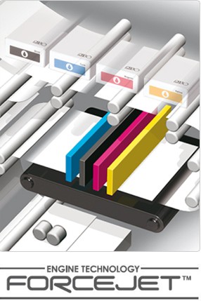 La tecnologia FORCEJET™ si trova esclusivamente nei prodotti a getto d’inchiostro di RISO. RISO ha sviluppato e costruito la propria tecnologia basandosi sulla comprovata esperienza di affidabilità dei duplicatori digitali, utilizzando al posto dei singoli cilindri di inchiostro e i master con immagini statiche delle testine da stampa a getto di inchiostro.