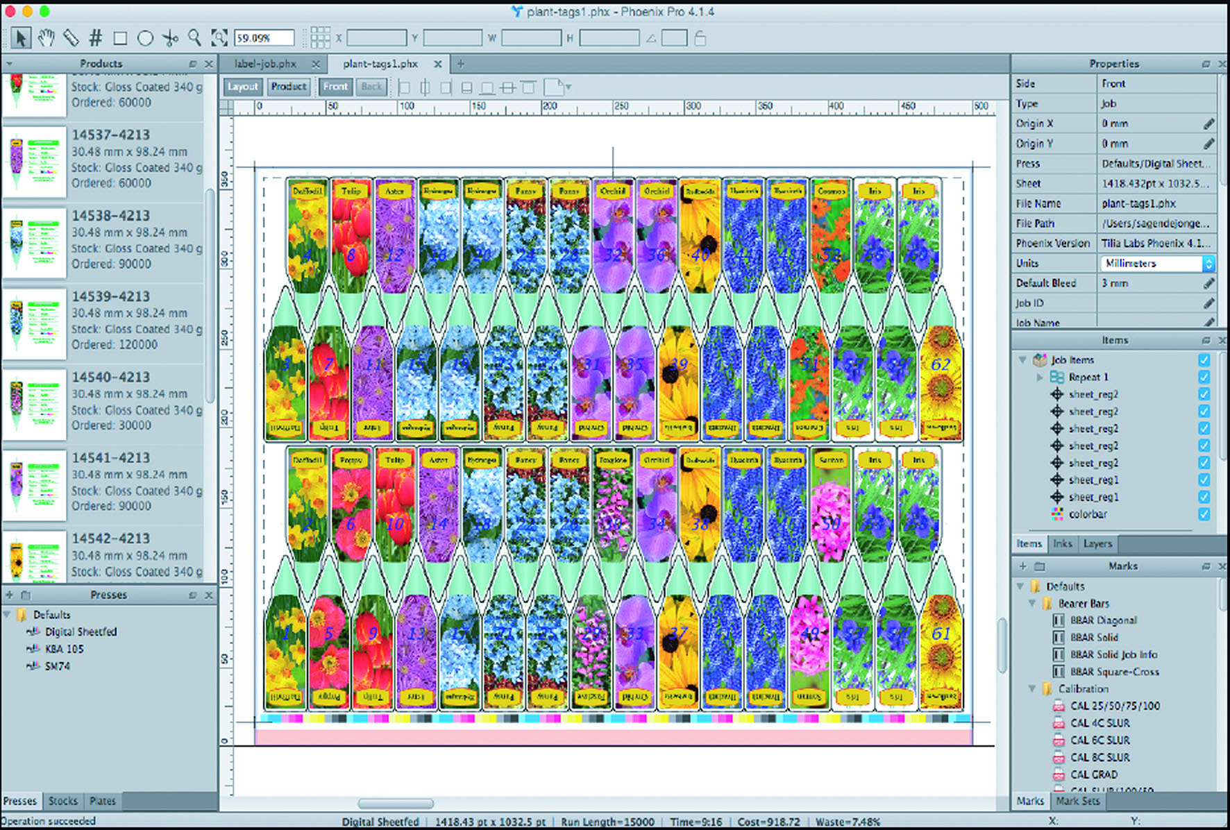 Lo strumento di ganging Plan multi-layout dell’ultima release di Phoenix è stato riprogettato per offrire una maggiore efficienza nel minor tempo possibile. Anche per i lavori fronte/retro il software ottimizza in modo intelligente il layout sfruttando al meglio le funzionalità del dispositivo di stampa per combinare in modo efficace sul foglio di stampa i prodotti.