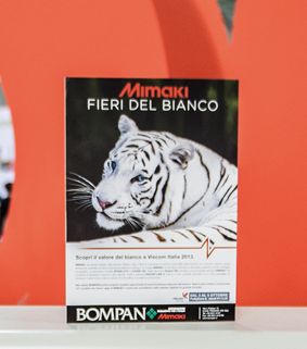 Rachele Bompan, Marketing Manager di Bompan, illustra così tale filosofia: «Oggi vantiamo una gamma estremamente ricca e versatile di tecnologie di grande formato, che fanno di Mimaki un brand di riferimento del settore. Gli elementi avanzati e distintivi dei sistemi Mimaki consentono a utenti appartenenti sia al mondo della visual comm che ad altri settori di cogliere opportunità di business un tempo inaccessibili». Rachele aggiunge: «Siamo particolarmente orgogliosi di mostrare a Viscom 2013 le potenzialità offerte dalla stampa con inchiostro bianco, oggi disponibile su numerose stampanti Mimaki e in grado di spalancare le porte a un ampio ventaglio di applicazioni».
