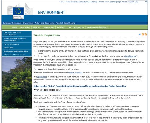 Il sito Internet della Commissione Europea relative alle normative del Timber Regulation