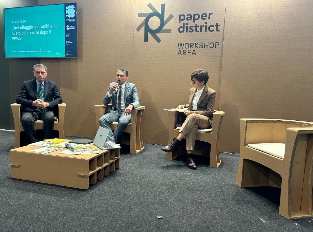 Nei giorni scorsi si è tenuta a Rimini alla fiera Ecomondo la conferenza di apertura del Paper District dal titolo: ”L’imballaggio sostenibile: la filiera della carta dopo il PPWR”. Ne hanno discusso, fra i principali attori della filiera della carta, il presidente di Federazione Carta Grafica Michele Bianchi e il DG Comieco Carlo Montalbetti.