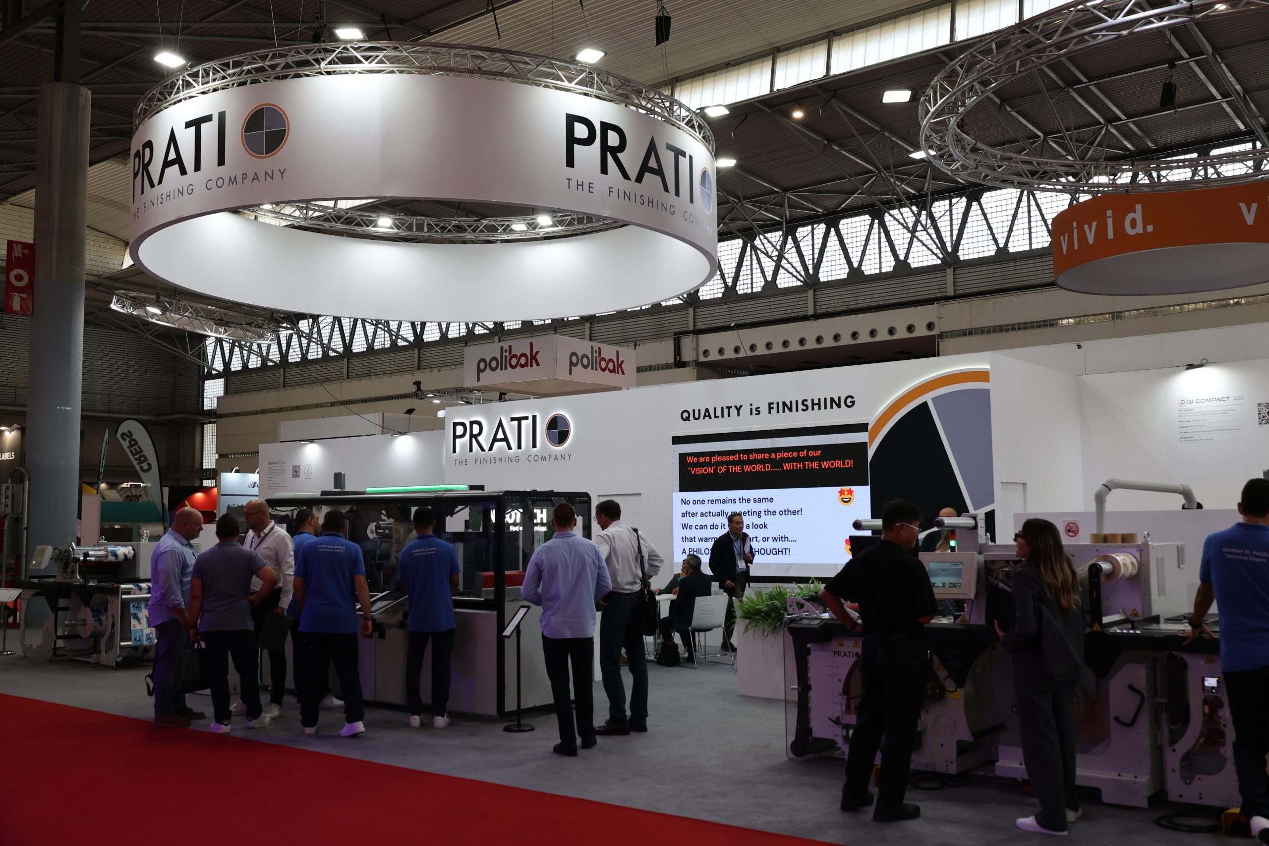 È stata una presenza importante quella di Prati a Labelexpo 2025, per la prima volta con due stand adiacenti, per un’area complessiva di circa 800 mq. Quanto serviva ad accogliere una serie di macchine ampia come poche altre. Erano infatti otto le linee all’opera. Alle quali vanno aggiunti altre tre installazioni Saturn presso i partner AVT, DecoSystem e BST.