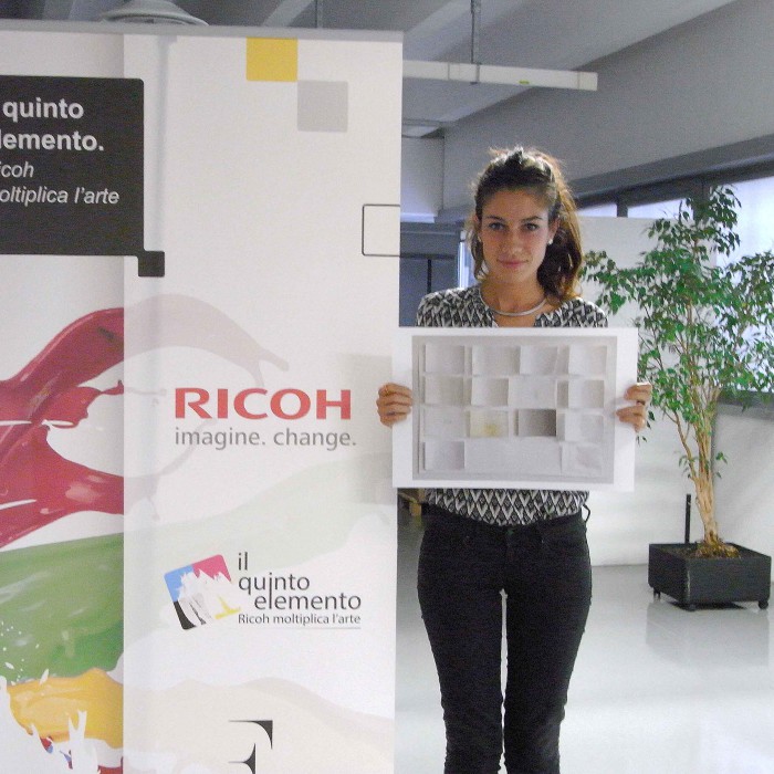 Con il premio «Il quinto elemento. Ricoh moltiplica l’arte», vinto da Stefany Savino, l’azienda ha voluto porre in risalto i giovani talenti e le potenzialità della soluzione di stampa Ricoh Pro C7100X e del suo quinto colore nel mondo della creatività.