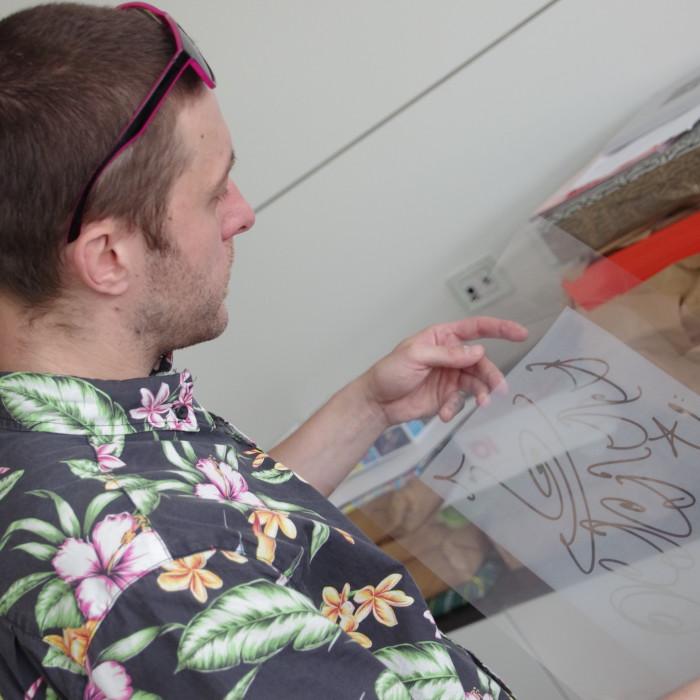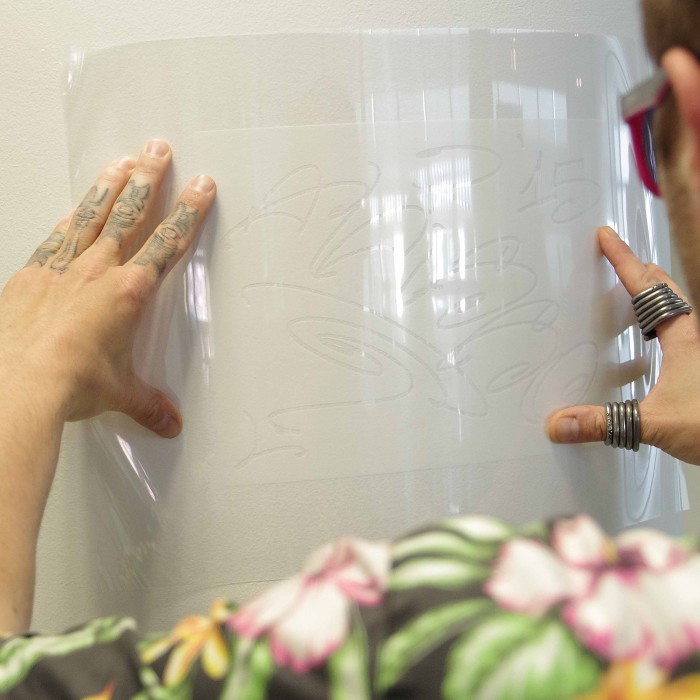 «La mia idea è stata quella di utilizzare un foglio di pvc per dare un effetto di rilievo, quasi fosse una stampa realizzata con lastre», ha detto Marco Abisso, nell’illustrare la propria opera d’arte.» Non ho puntato a un’idea estetica di tipo compositivo (ho riprodotto semplicemente la mia firma) bensì a una ricerca di materiali che, giocando sulle trasparenze, dia l’idea che sia un lavoro sottovetro».