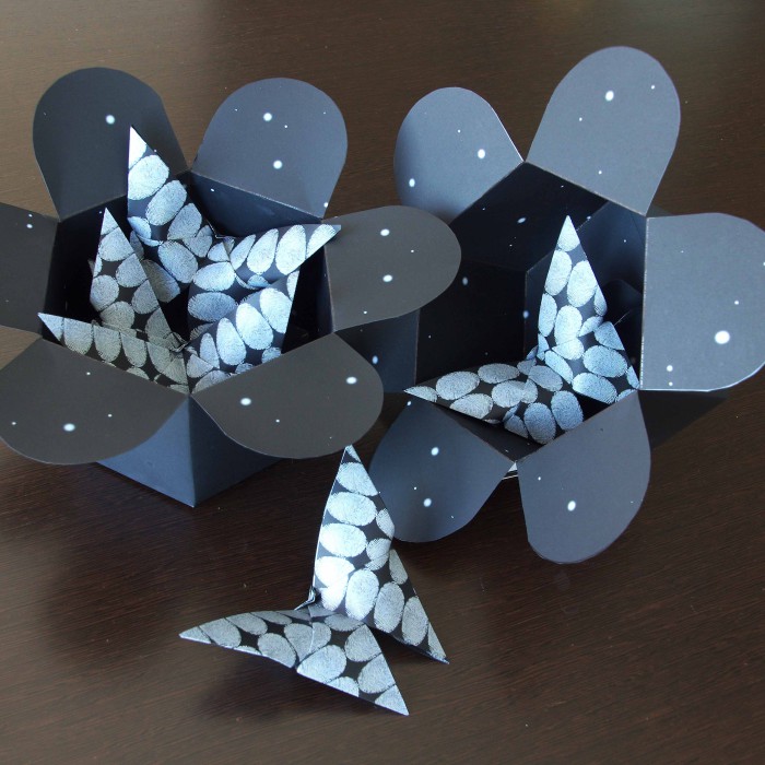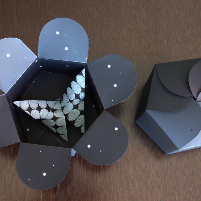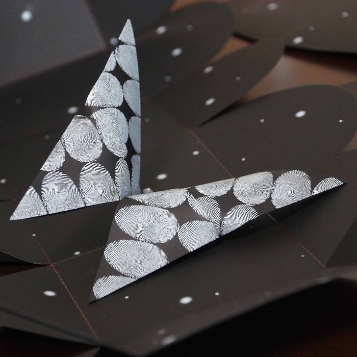 «Il mio lavoro, Purinto Kami” (carta stampata e piegata), si richiama alla tradizione giapponese del dono, fatto in particolare, a chi doveva partire», ha dichiarato la vincitrice nell’illustrare la propria opera d’arte. «Ho realizzato, così, delle scatole, al cui interno si trova un origami a forma di farfalla. Questo insetto è simbolo della trasformazione, metafora di quanto è in grado di realizzare la soluzione di stampa Ricoh Pro C7100X. Nella mia attività artistica svolgo spesso performance legate alla body art che qui trova espressione nelle mie impronte digitali, che percorrono tutto l’origami. Le impronte bianche valorizzano le potenzialità del quinto elemento».