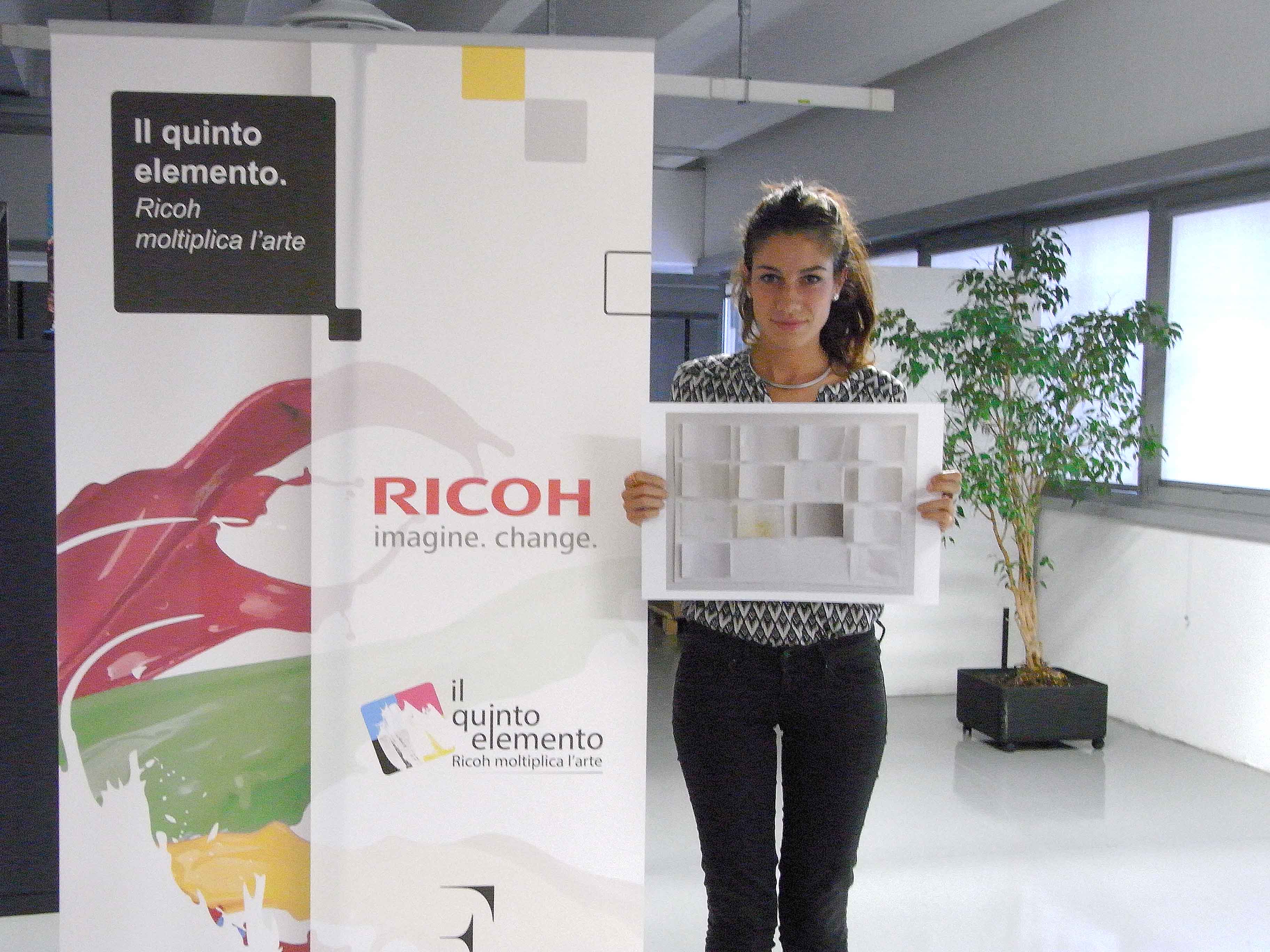 Con il premio «Il quinto elemento. Ricoh moltiplica l’arte», vinto da Stefany Savino, l’azienda ha voluto porre in risalto i giovani talenti e le potenzialità della soluzione di stampa Ricoh Pro C7100X e del suo quinto colore nel mondo della creatività.
