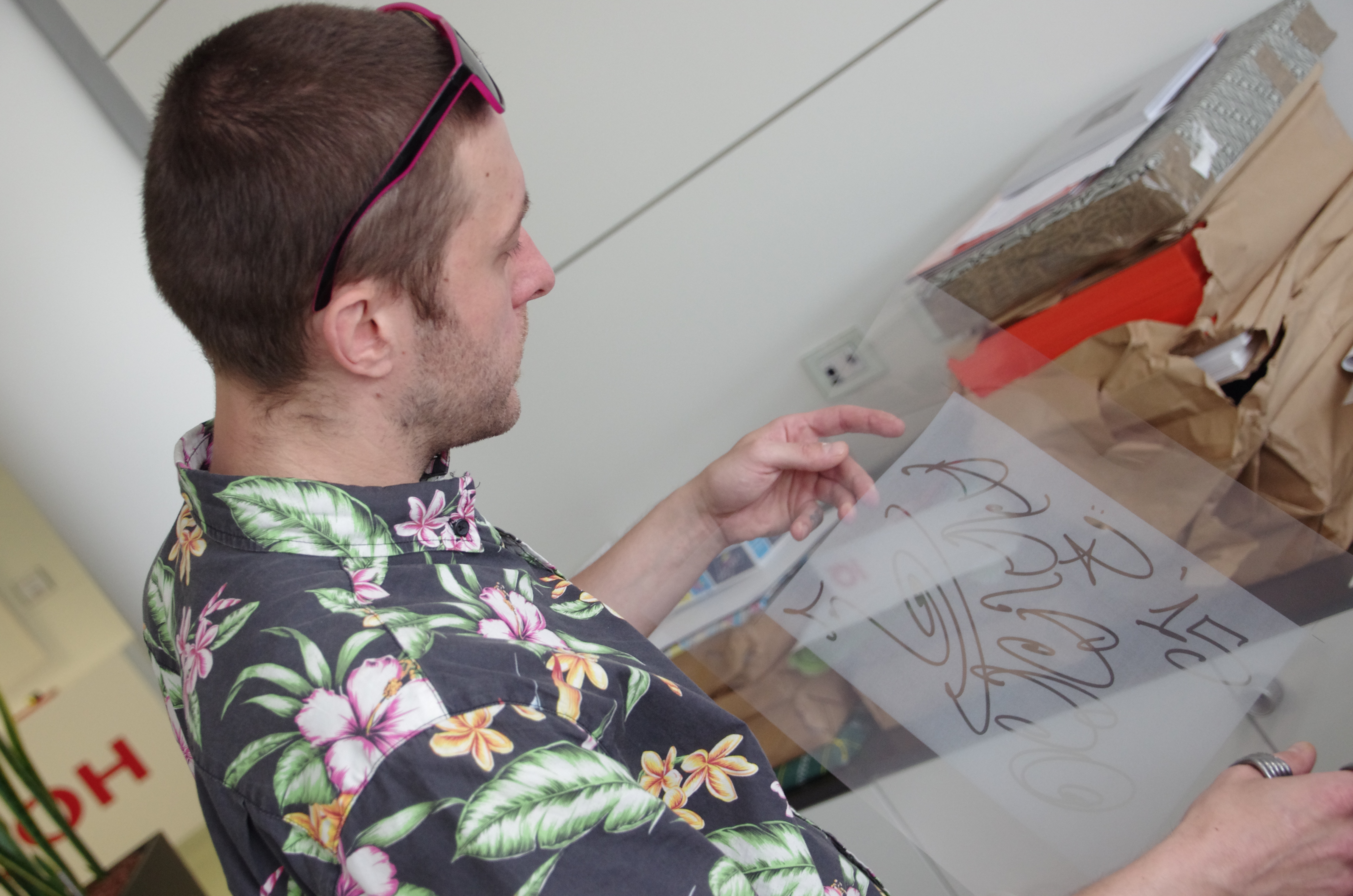 «La mia idea è stata quella di utilizzare un foglio di pvc per dare un effetto di rilievo, quasi fosse una stampa realizzata con lastre», ha detto Marco Abisso, nell’illustrare la propria opera d’arte.» Non ho puntato a un’idea estetica di tipo compositivo (ho riprodotto semplicemente la mia firma) bensì a una ricerca di materiali che, giocando sulle trasparenze, dia l’idea che sia un lavoro sottovetro».