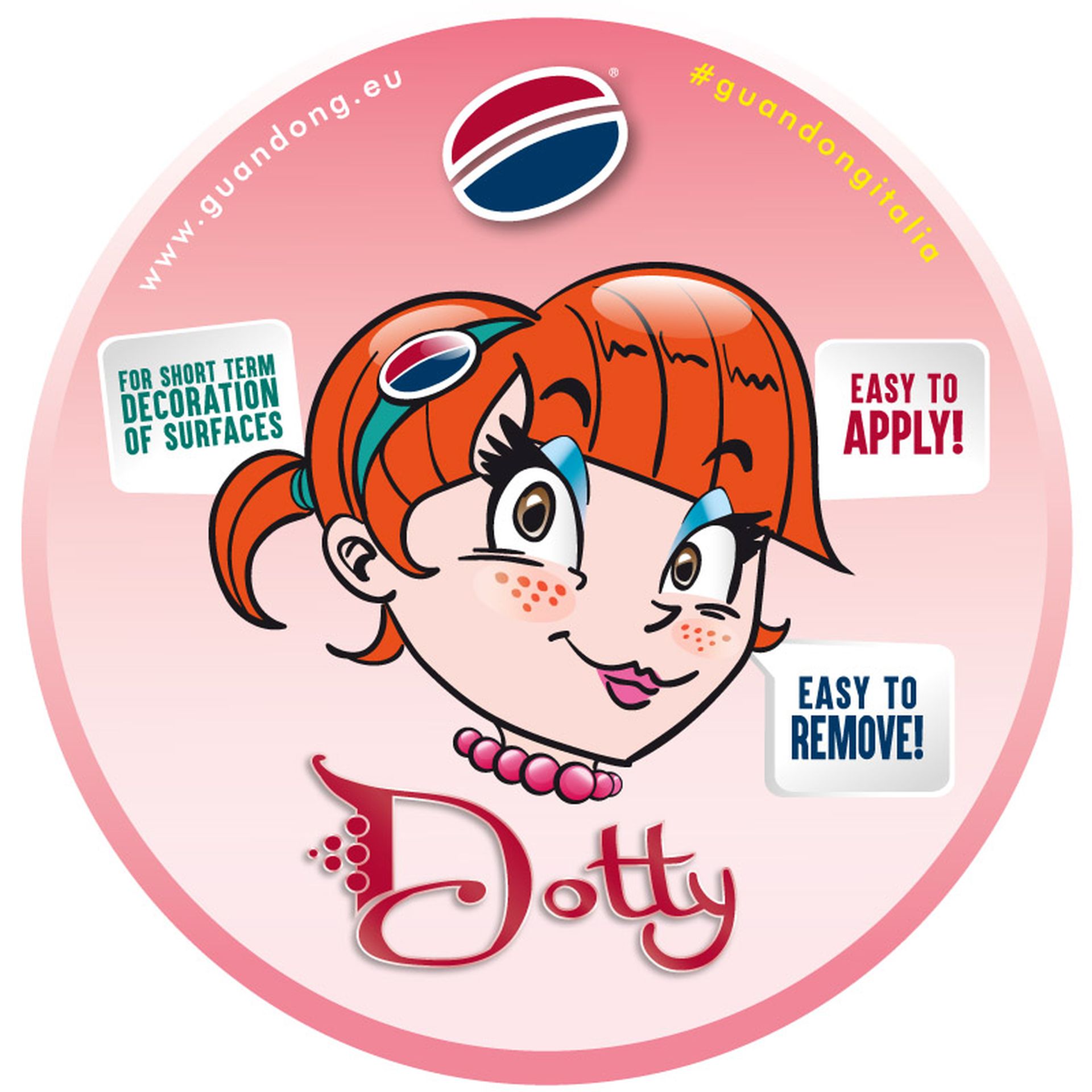 La coppia più bella del mondo della VisualCom è quella composta da Dotty & Wally, due prodotti alleati della comunicazione in-store che il reparto marketing di Guandong ha rappresentato dando loro le sembianze di personaggi dei cartoon. Dotty è una ragazzina tutto pepe con le guance coperte di lentiggini, che richiamano la colla a punti, sua particolare caratteristica. Questo prodotto, a differenza delle tradizionali pellicole, è appositamente studiato per agevolare l’applicazione di vetrofanie e grafiche su superfici lisce, evitando antiestetiche bolle d’aria e pieghe. Wally, raffigurato invece come un ragazzo un po’ impacciato, che ironicamente rappresenta il non addetto ai lavori, è un adesivo da parete particolarmente facile da applicare, altrettanto facile da rimuovere o riposizionare e dotato di un’elegante texture.