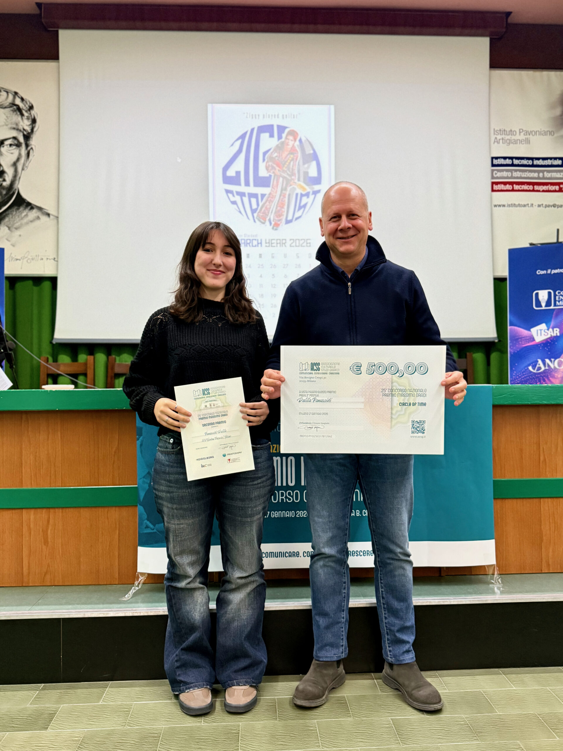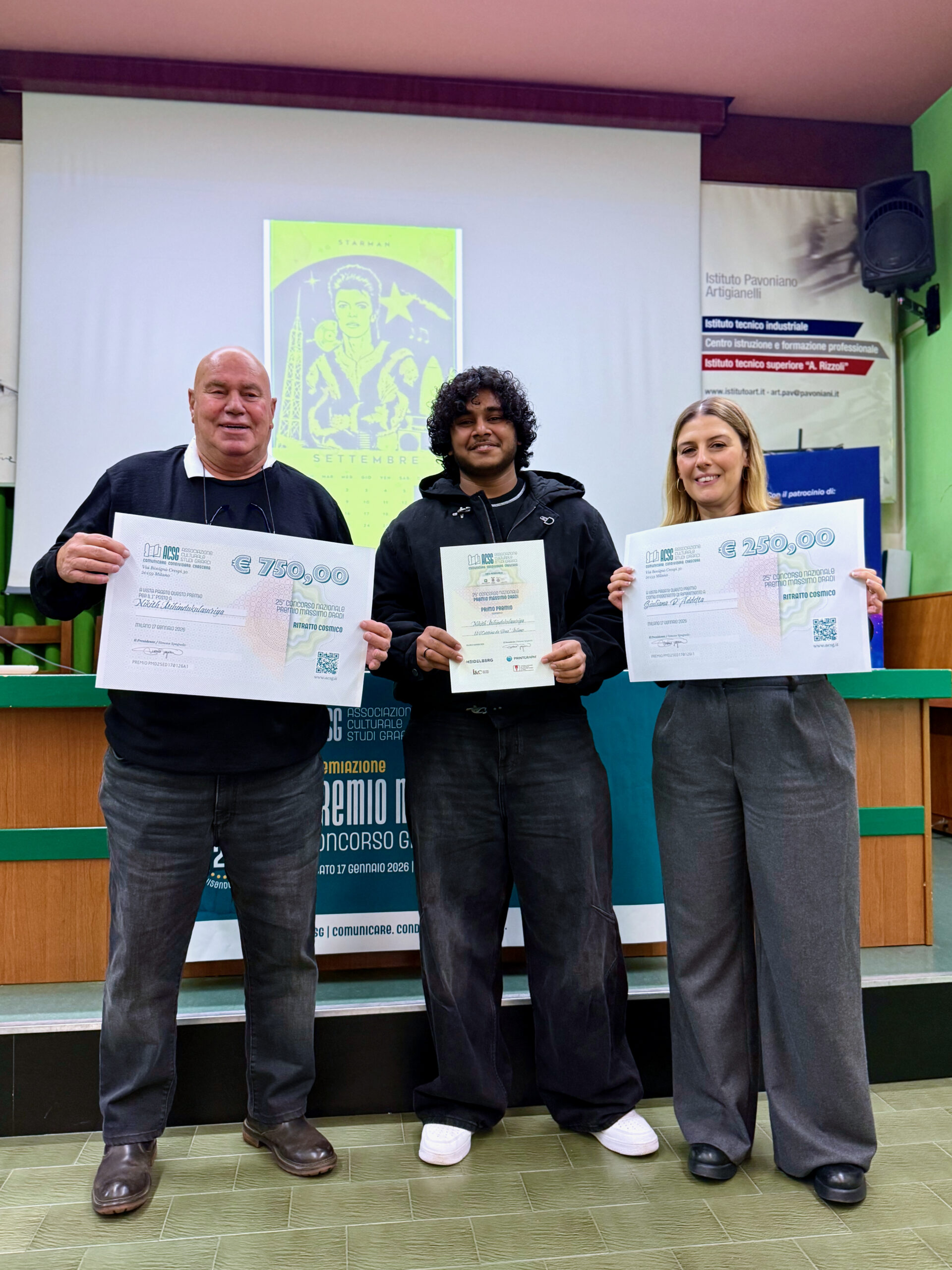 Si è svolta il 18 gennaio a Milano la cerimonia di premiazione della 25ª edizione del Premio Massimo Dradi, il concorso grafico nazionale promosso dall’Associazione Culturale Studi Grafici (ACSG). L’evento ha registrato una partecipazione straordinaria, confermando il Premio come un punto di riferimento per gli istituti superiori a indirizzo grafico e di comunicazione in tutta Italia.