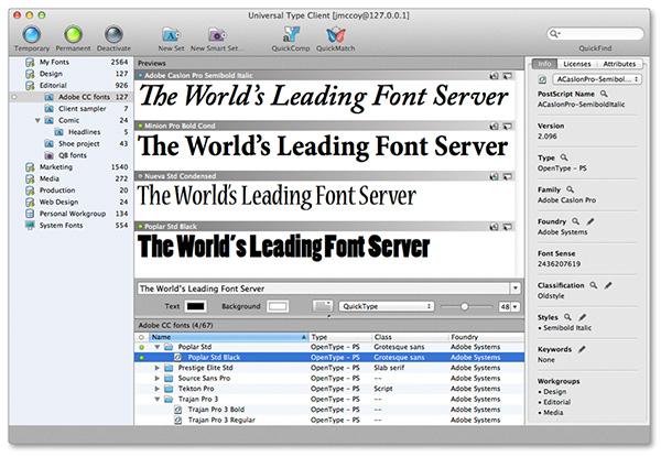 Compatibile con Adobe Creative Cloud, quindi, InDesign, Photoshop, Illustrator, InCopy e con Quark XPress 10, questa soluzione firmata Extensis fornisce ai membri dei team l’accesso immediato a tutta la collezione di Font e grazie alla tecnologia Font Sense, ne consente l’attivazione in modo automatico.