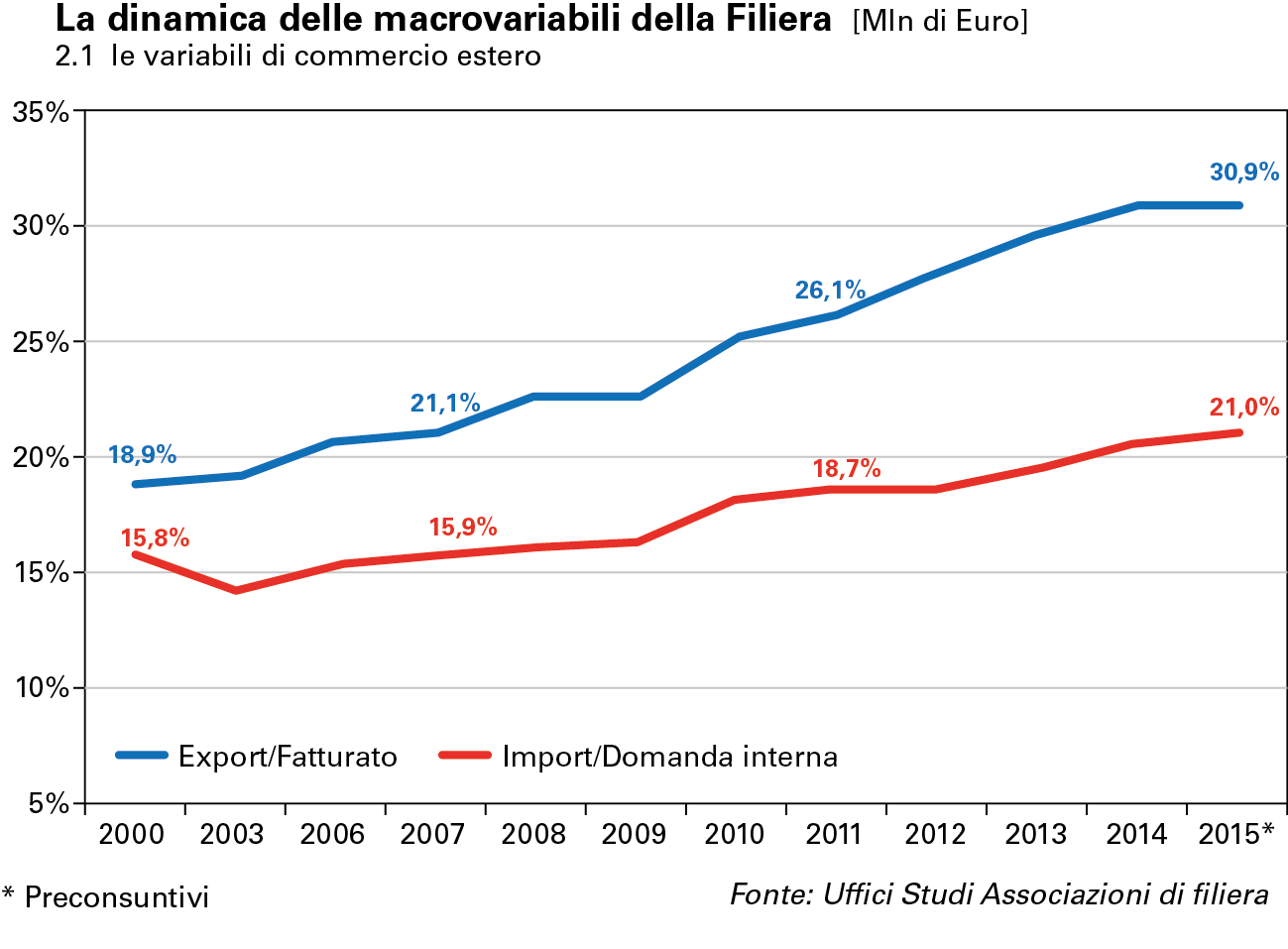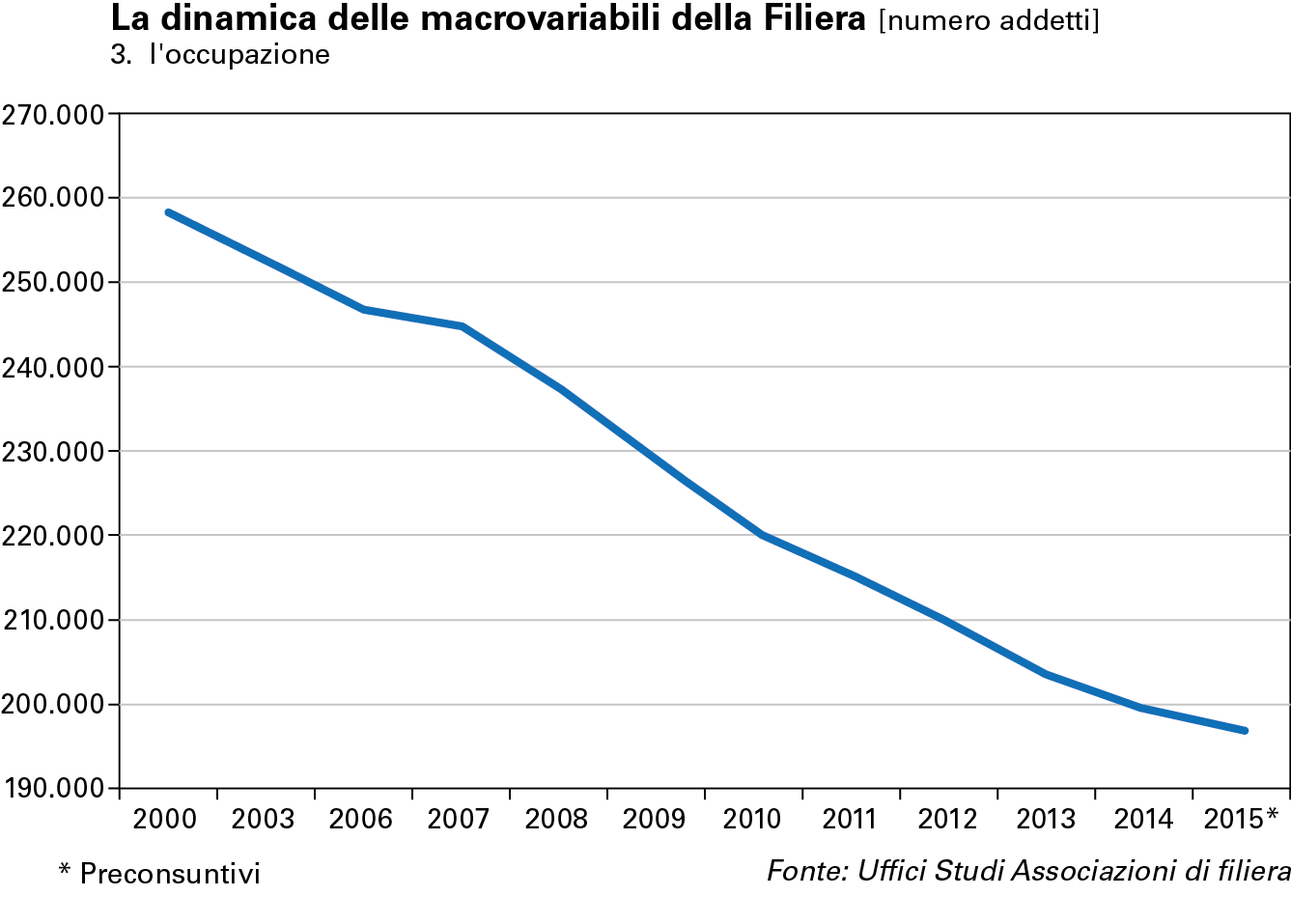 Sul fronte delle esportazioni la filiera ha confermato nel 2015 i valori del 2014, con un aumento dello 0,3%, l’export è e rimane l’elemento trainante. «La modesta dinamica dell’export nel 2015 è un elemento sul quale dobbiamo riflettere – ha detto Claudio Covini, direttore di Assografica – si tratta di un fenomeno dovuto sia alla concorrenza internazionale che è molto forte, sia al rallentamento dell’economia globale che c’è stato lo scorso anno». Sull’export dall’anno 2000 (anno d’inizio delle rilevazioni) si è assistito un passaggio dal 19% al 30,9%, ossia in termini assoluti il suo valore è passato dai 7,3 miliardi di euro del 2000 ai 9,4 miliardi di euro del 2015. E tutto ciò nonostante il fatturato complessivo sia diminuito di otto miliardi nello stesso periodo. La scarsa variazione dell’export nell’ultimo anno e il peso preponderante del mercato interno, con la compressione dello stesso, sono i due grandi problemi di fondo ai quali s’aggiunge l’aumento delle importazioni che, pur non toccando i livelli pre crisi e del 2011, hanno visto nel 2015 un più del 2,9%, valore che sommato al più 3,5% del 2014 fa un più 6,4% in due anni. La conseguenza è che il rapporto delle importazioni sulla domanda interna è aumentato ancora rispetto al 2014, passando dal 15,9% del 2007 al 21% del 2015. I valori export/fatturato, 30,9%, e quelli dell’import/domanda interna, 12%, anche se si sono ridotti in termini di valore assoluto, sono in costante crescita. Si tratta di dati che sanciscono lo scarso grado d’apertura internazionale della filiera, specie nei segmenti a valle, ma sull’altro fronte troviamo anche una buona tenuta della competitività del tessuto produttivo nazionale. Si tratta di un fatto positivo visto il crescente quadro d’aggravio della concorrenza dall’estero. Buone notizie, invece, per quanto riguarda la bilancia commerciale che è passata da 1,5 miliardi di euro del 2000 ai 3,8 miliardi del 2015. Continua, invece, l’emorragia di posti di lavoro. Gli addetti diretti sono scesi dell’1,2%. Oggi sono 197mila, contro i 200mila del 2014, mentre a livello cumulato negli anni tra il 2007 il 2015 si sono perse 48mila unità e 80mila in quella indiretta, per un totale di 128mila posti di lavoro. «Quella della carta è una filiera unica e irripetibile che innerva tutta l’Italia e che dà voce e veste anche al Made in Italy. – conclude Massimo Medugno, che prosegue – oggi la filiera già ricicla il 55% di quanto immette sul mercato e rappresenta il 5% dell’occupazione manifatturiera complessiva».