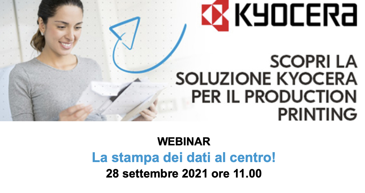 Interverranno al webinar Alessandro Mambretti, Expert Production Print Solutions di Kyocera Document Solutions Italia, Alessandro Bellotti di EFY Italia e altri protagonisti.